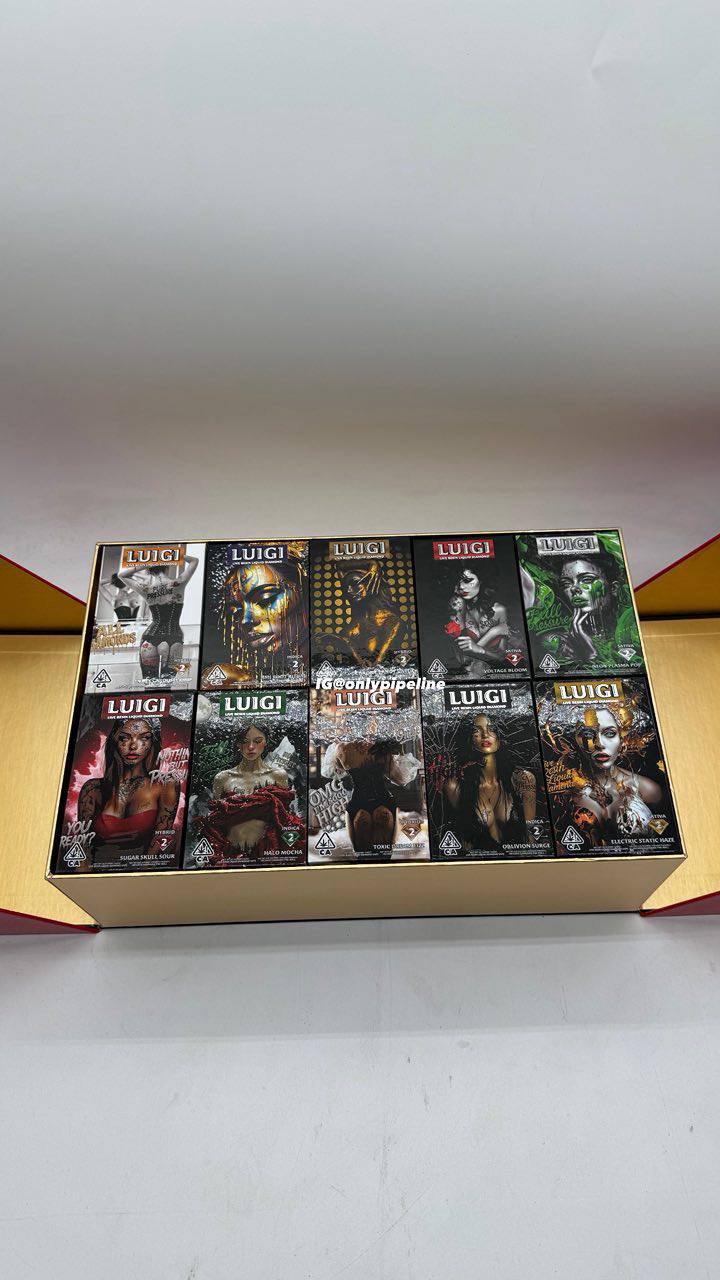 Authentic Luigi cartridges arrive in rigid, matte-finish cardboard with spot-gloss logo application. Counterfeit packaging often uses thinner stock with glossy, low-resolution printing. Run your fingernail across the text authentic packaging features micro-embossing that creates tactile resistance.